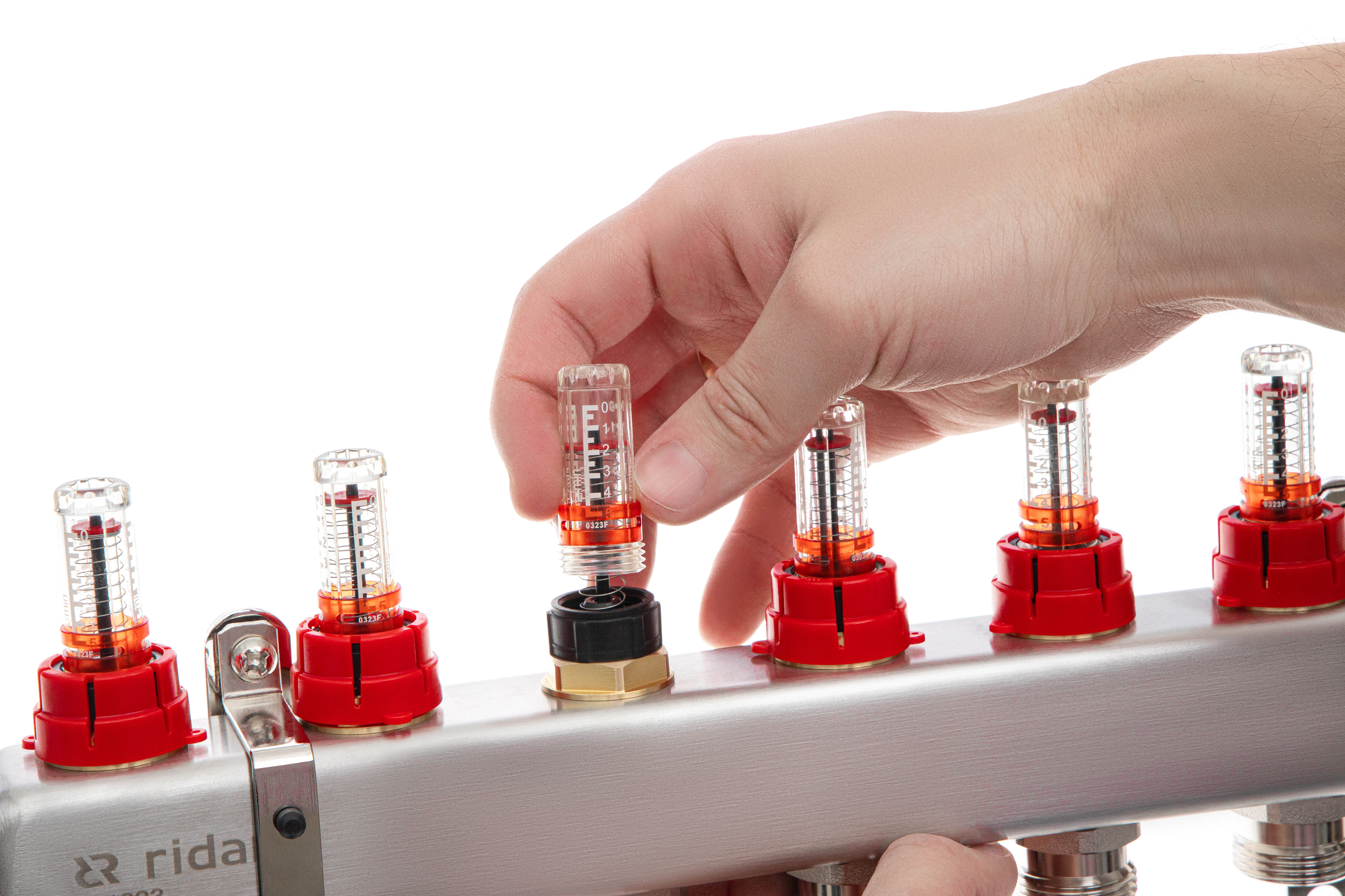 Ридан 088U0953R — Комплект коллекторов SSM-3RF set с расходомерами, кронштейнами, ручным воздухоотводчиком, сливным краном и торцевой заглушкой, 3 контура